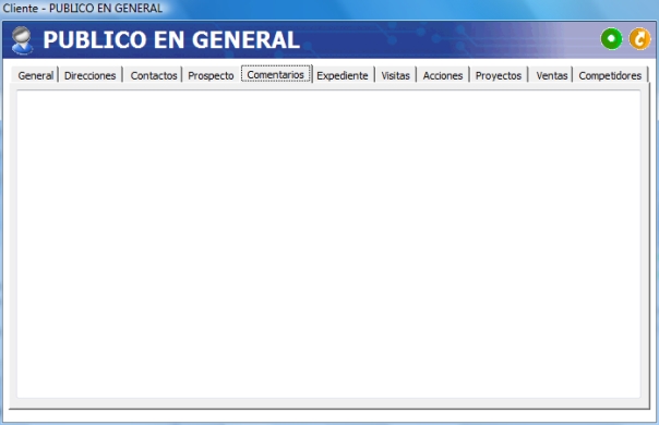 Acceda con un clic en la pestaña de comentarios y podrá poner los comentarios que usted considere de interés sobre su cliente.